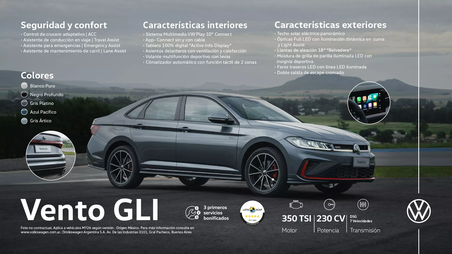 El Vento GLI destaca en su categoría por su increíble motor 350 TSI.